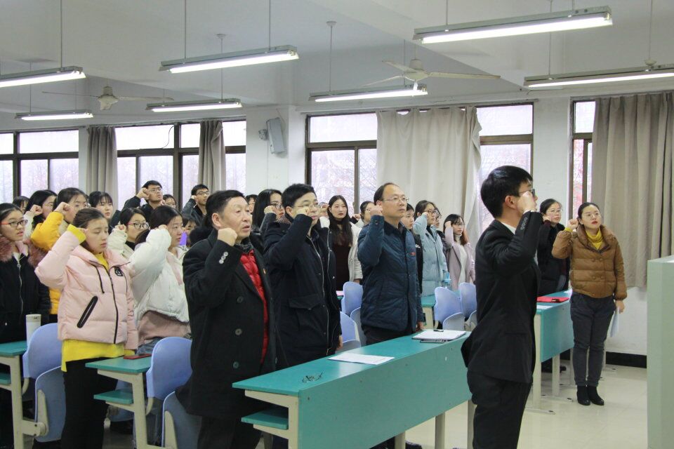 12月26日下午,管理科学与工程学院党委在明德楼217教室举行新党员入党宣誓仪式。党委书记吴永夺、组织员徐义东、学生党支部书记张榜树、马海磊、周璇及学院本期新发展预备党员和转正党员参加了入党宣誓仪式。宣誓仪式由党委秘书王秋祎主持。