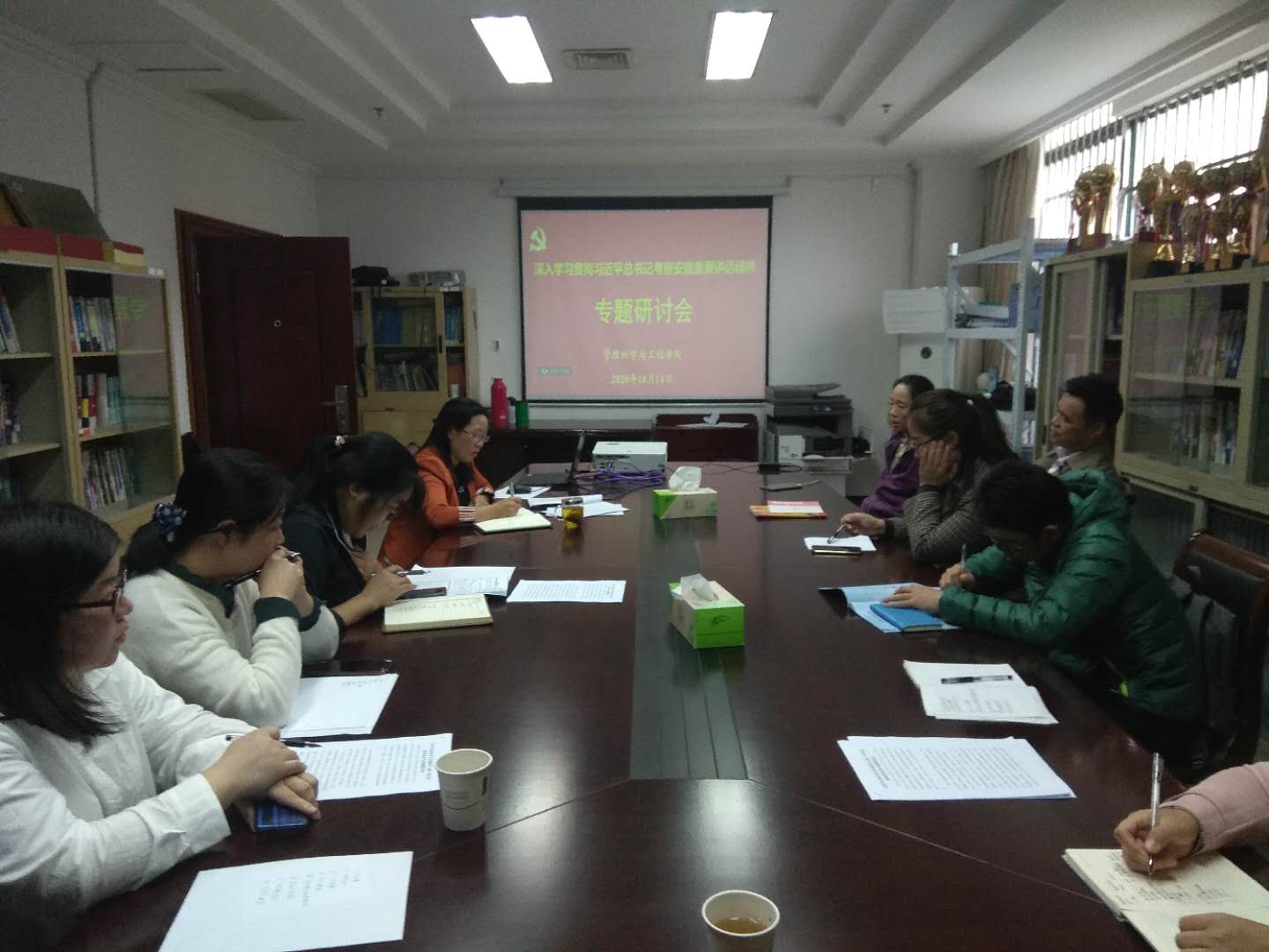2020年10月15日,管理科学与工程学院信息管理与信息系统系党支部召开深入学习贯彻习近平总书记考察安徽重要讲话精神专题研讨会,信管系全体教师参加学习研讨,会议由党支部书记张子振主持。