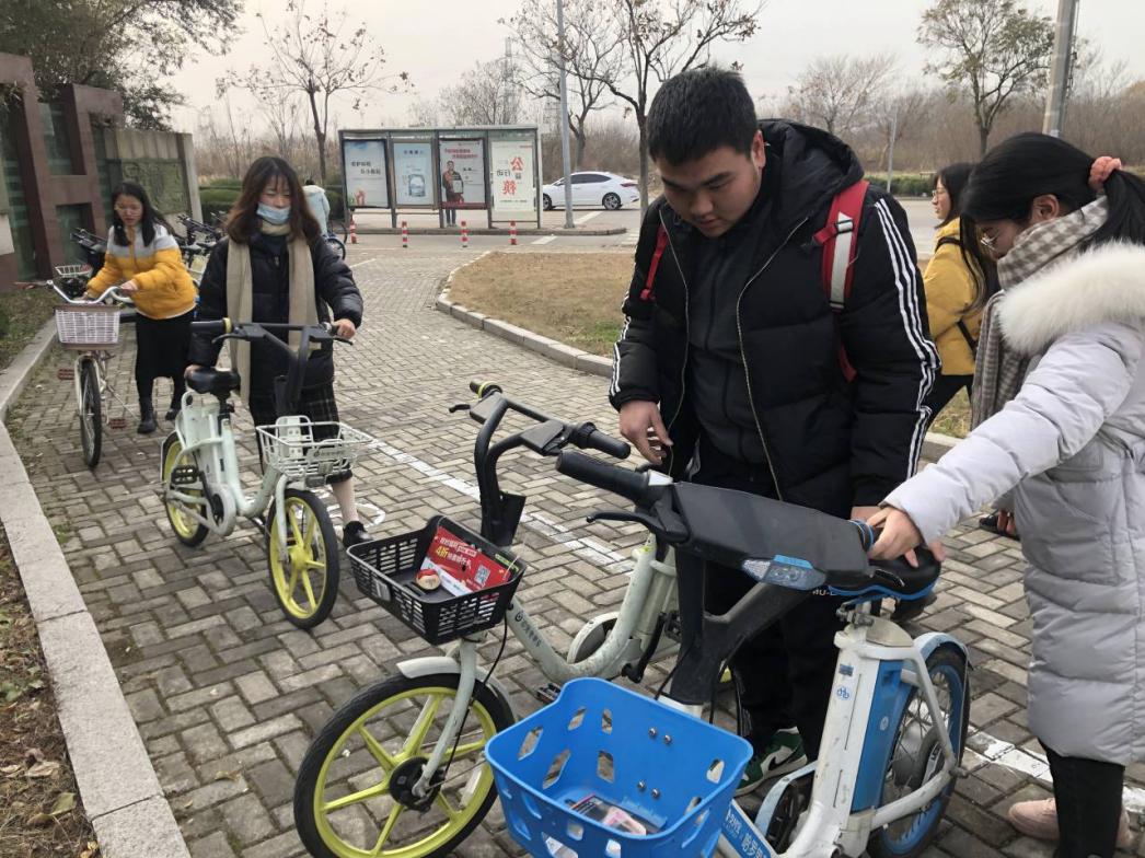 共享单车在为广大学生提供方便的同时,由于乱停乱放车现象的日益增加,造成学校门口环境杂乱,影响门口路段行人通行,影响学校面貌形象。为了进一步发挥大学生党员志愿服务社会、服务人民的积极性,营造文明共建共享的良好氛围,我院管工类一支部于2020年12月12日开展了“文明共享,绿色出行”整理共享单车服务活动。