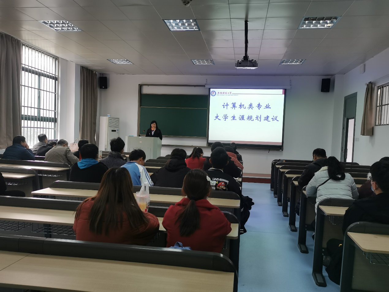常郝老师分享了个人科研工作的经验和体会,鼓励全体与会人员在科研道路上要有永不言败的“坚持”精神;李东勤老师介绍了计算机科学与技术和物联网工程专业的人才培养特色与社会需求概况,从工程实践能力、创业创新精神和学习能力培养的角度提出了计算机类专业大学生涯规划建议;孙玉涛老师介绍了“互联网+”大学生创新创业大赛、蓝桥杯全国软件和信息技术专业人才大赛、中国大学生计算机设计大赛、安徽省机器人大赛等学科竞赛的基本概况,提醒学生要善于发现问题、深化知识运用、做到活学活用;王平水汇报了主持的安徽省高校人文科学研究项目(“互联网+高校基层党建”管理与服务模式创新研究)的研究进展以及如何将项目研究与支部“双创”工作实践有机融合,提高党建工作实效性。