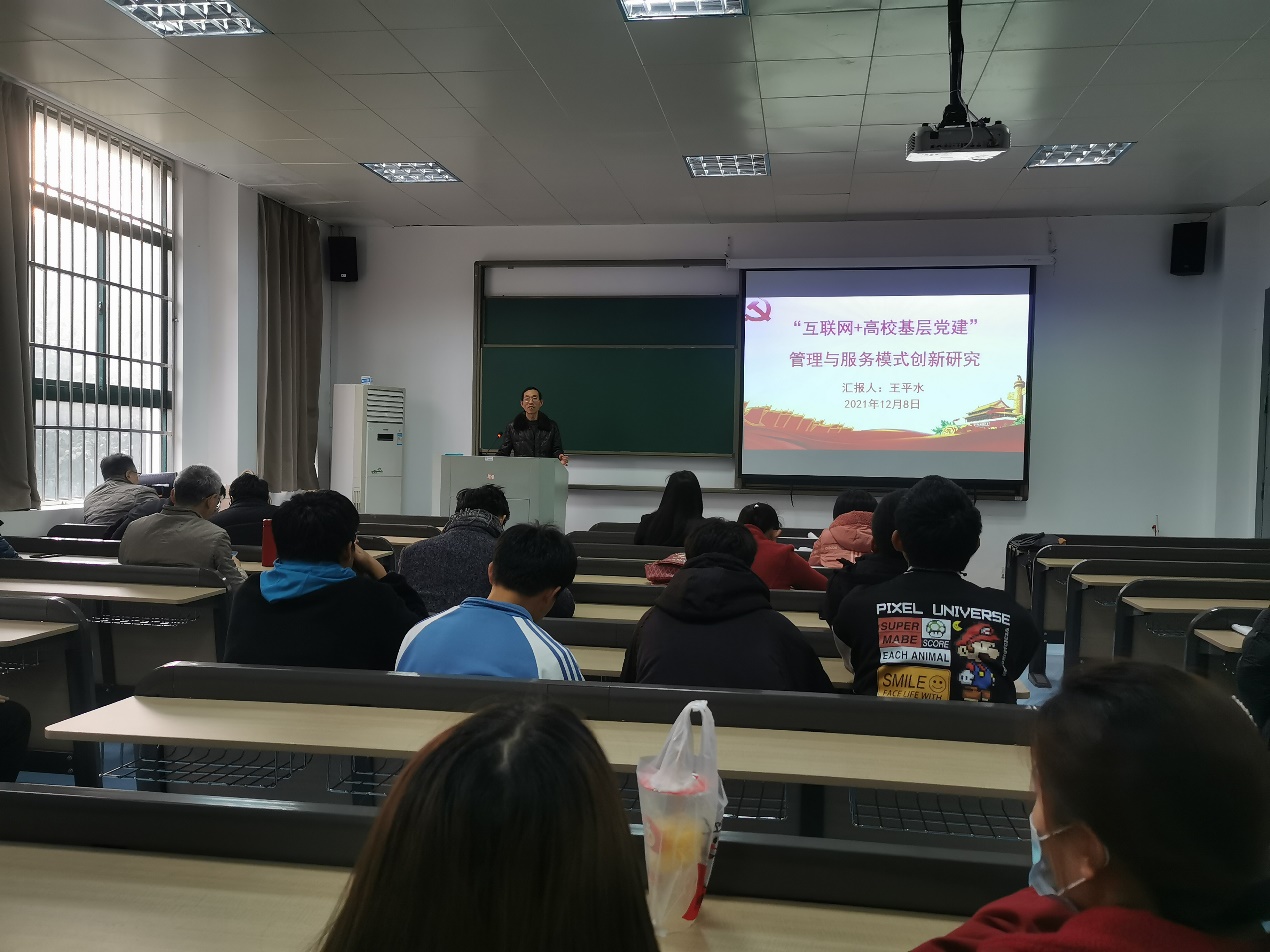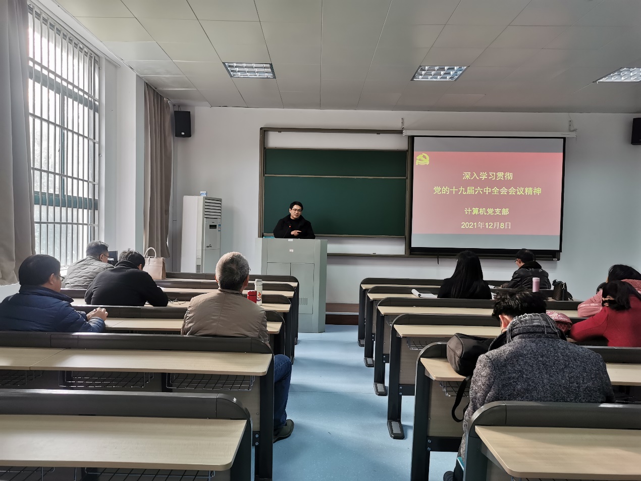12月8日下午,计算机党支部集中学习了党的十九届六中全会精神,会议由支部书记王平水主持,计算机党支部全体党员以及21级计算机类本科生代表参加。