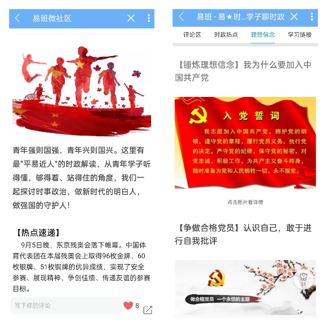 近日,我院学生计科类二支部充分利用易班网络平台开设“陪青年学子聊时政”专栏,着力提高新时代学生党员思想政治素养,引导青年党员坚定信仰跟党走。