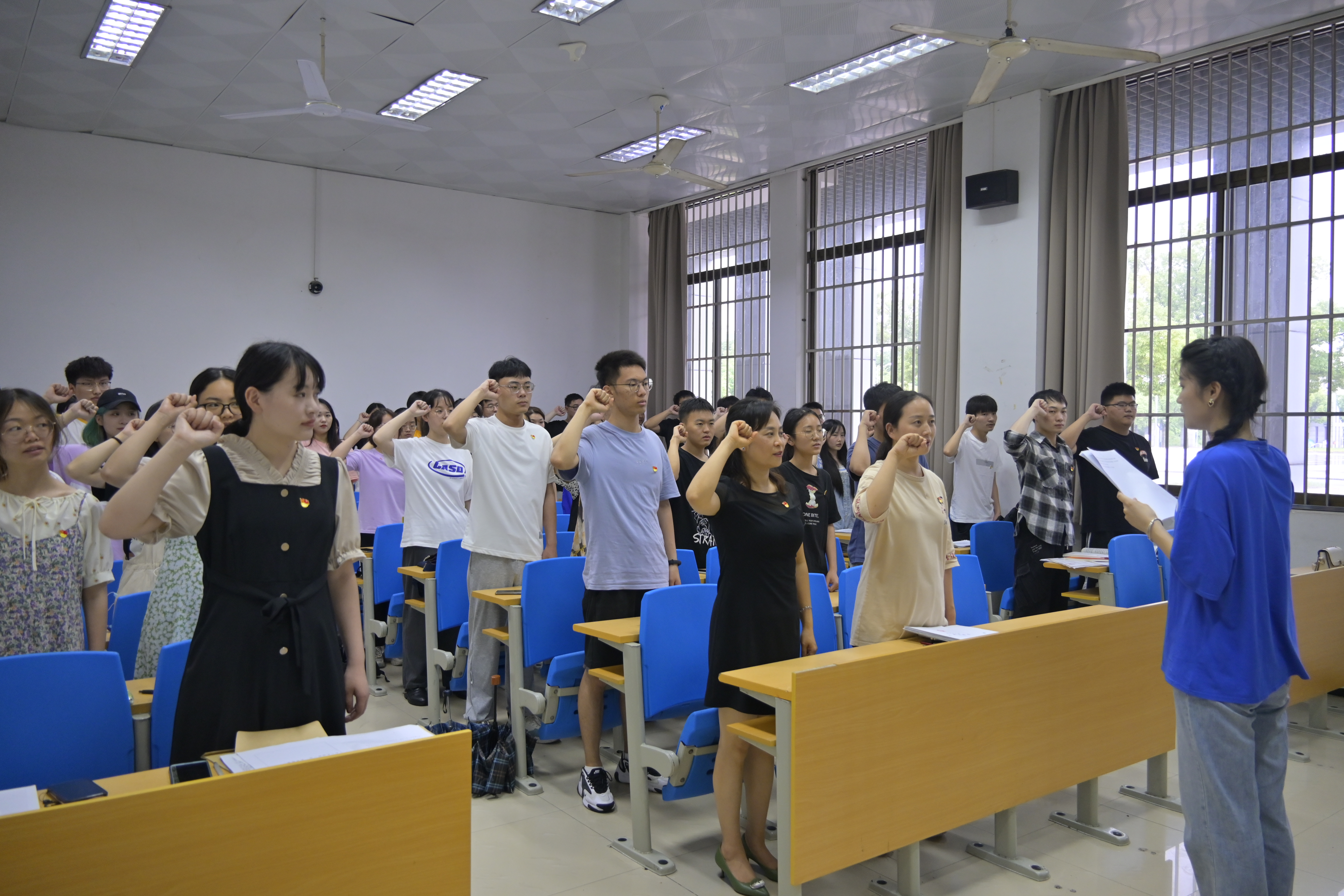 最后,全体与会党员重温入党誓词。铮铮誓言响彻教室,字字铿锵、句句千钧,饱含着坚定不移的政治信念和矢志奋斗的坚定决心。