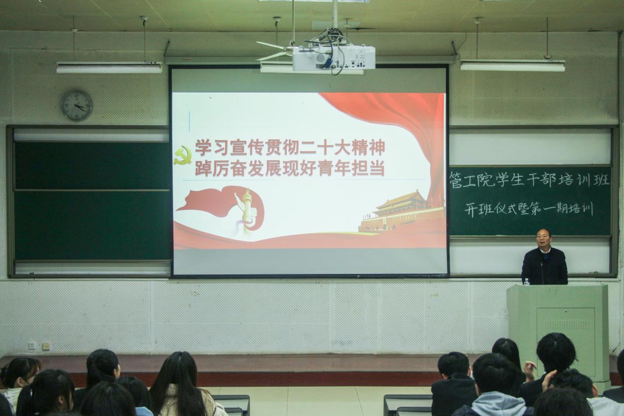 本次学生干部培训班以“学习二十大 永远跟党走 奋进新征程”为主题,邀请学院党委书记、团委书记及往届优秀学生干部围绕党的二十大精神宣讲、学生干部职能培训和学生干部工作经验等内容,通过课堂教学、互动交流等多种形式让学员在培训中学有所获。引导激励学生干部进一步了解其在校园文化建设、优良学风塑造中的关键作用,加深对自身责任的认识,激发他们做好工作的热情与动力。