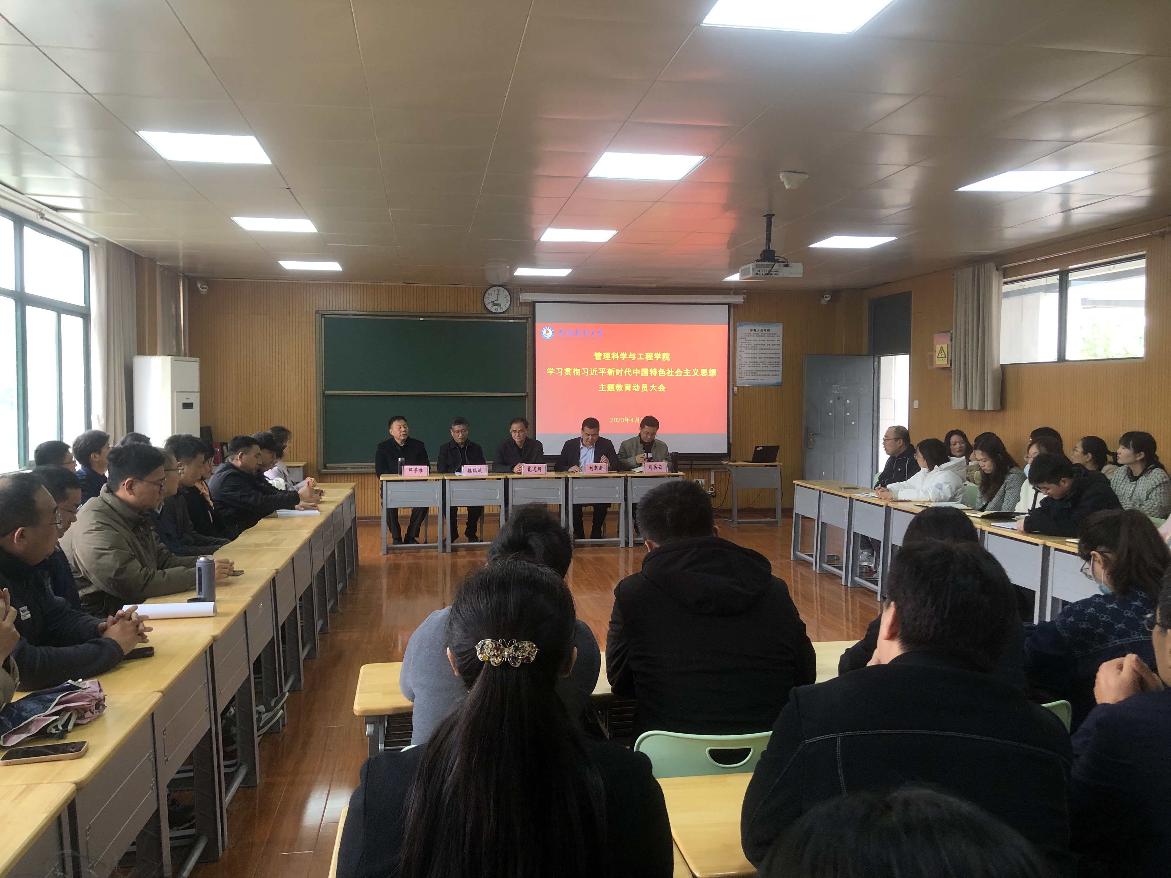 4月23日下午,学院在广学楼302召开学习贯彻习近平新时代中国特色社会主义思想主题教育动员大会暨专题辅导报告会。学院领导班子成员、全体教师党员、学生党员代表参加会议。党委副书记刘朝新主持会议并作动员讲话。
