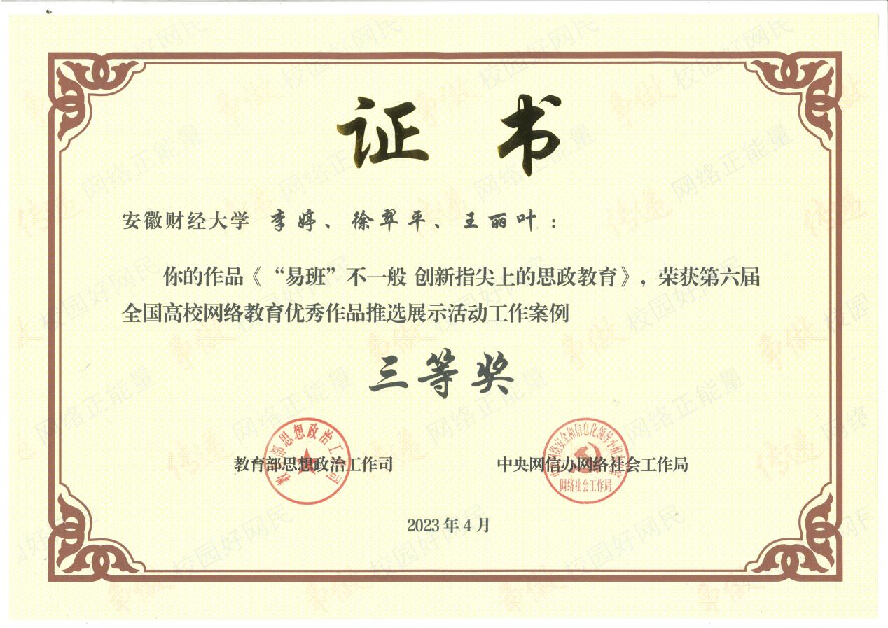 日前,在第六届“全国高校网络教育优秀作品推选展示活动”中,我院推荐作品《“易班”不一般 创新指尖上的思政教育》荣获工作案例类三等奖。