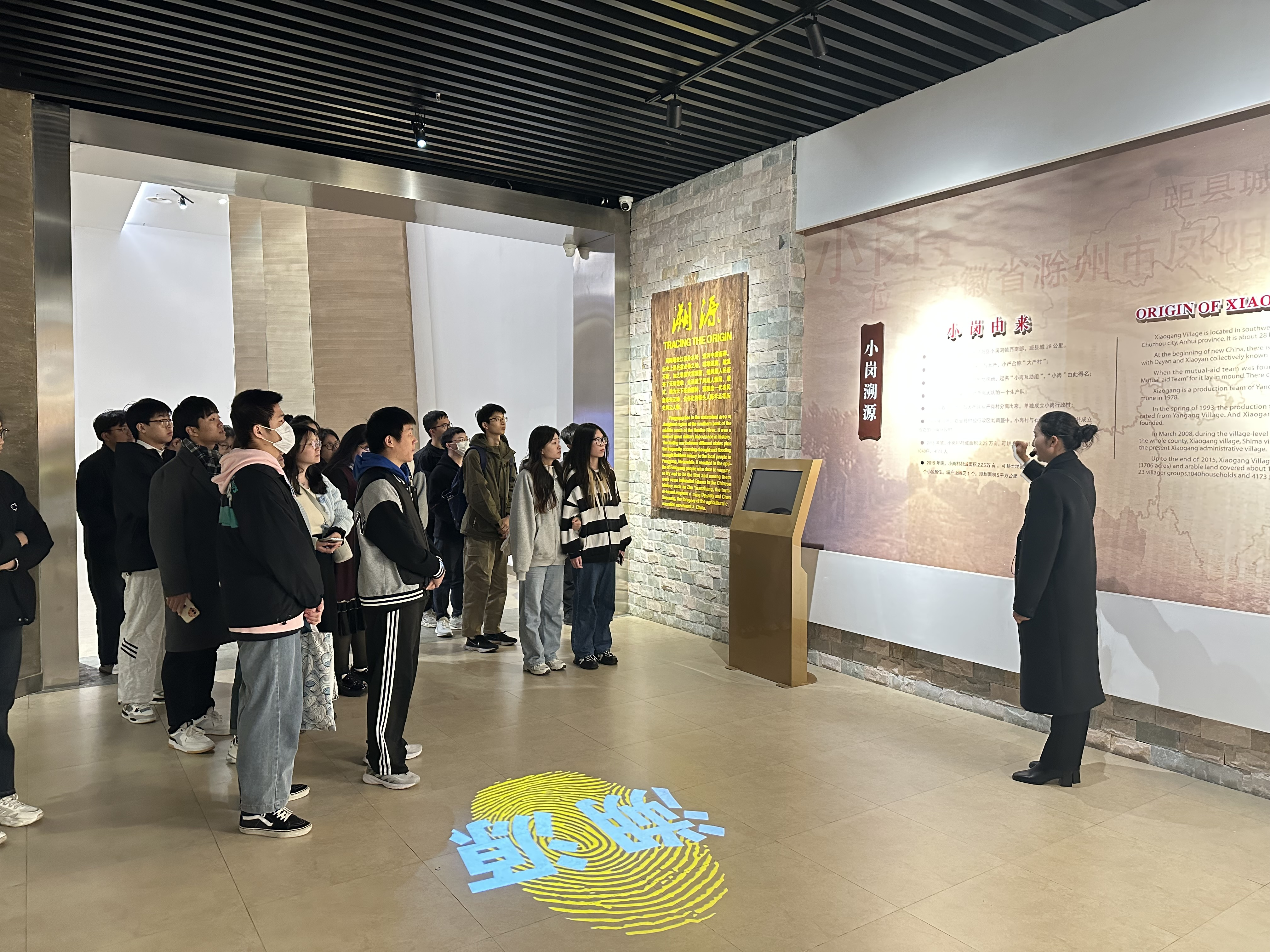 当天,同学们首先参观了“大包干纪念馆”,在纪念馆详细了解了当年18位农民冒着杀头坐牢的风险按下分田到户“大包干”红手印的全过程,深刻感受18位农民敢于创新、敢为人先的勇气和精神。在“当年农家”展区,大家身临其境地感受着当年小岗村的农作和生活。据介绍,当年农家是20世纪70年代典型的农家居所,包括原始农具展区、农民生活展区等,也是当年18户农民按“红手印”的原址。在展区中,凤阳花鼓非遗传人为同学们带来了凤阳花鼓戏表演,赢得了大家的阵阵掌声。最后,同学们一起参观了沈浩同志先进事迹陈列馆,见证带领小岗村走上致富道路的领路人的事迹。