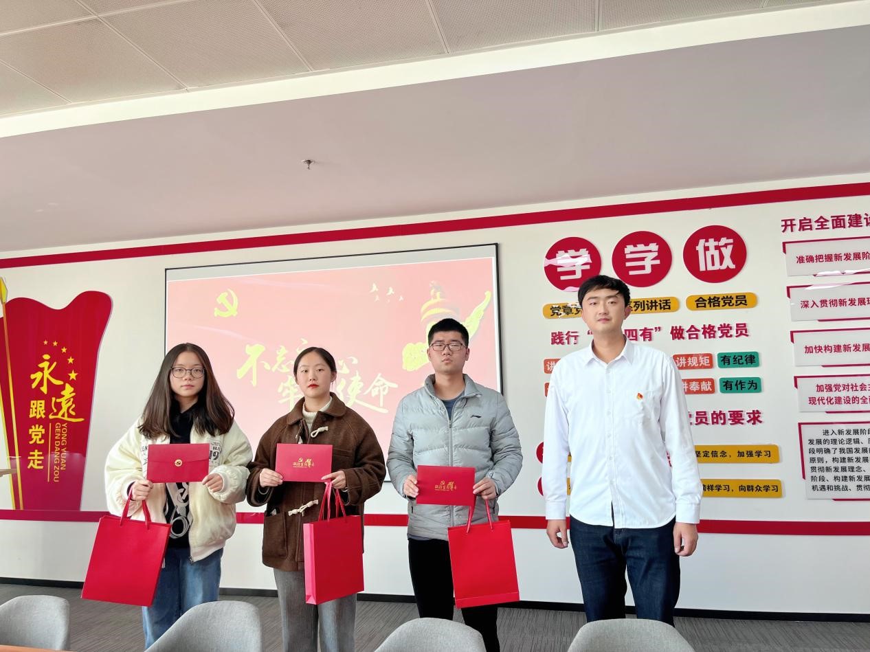 党支部向过“政治生日”的三位按期转正的党员赠送生日贺卡及纪念品,表达党组织对党员的关怀,激励党员学思想、强党性,以更加昂扬的精神状态,踔厉奋发、勇毅前行,走好新征程的每一步。在之后的学习、工作、生活中,依然永葆党员的先进性和纯洁性,再接再厉,牢记共产党员的使命和职责,保持共产党员的温度与厚度,争做优秀党员。