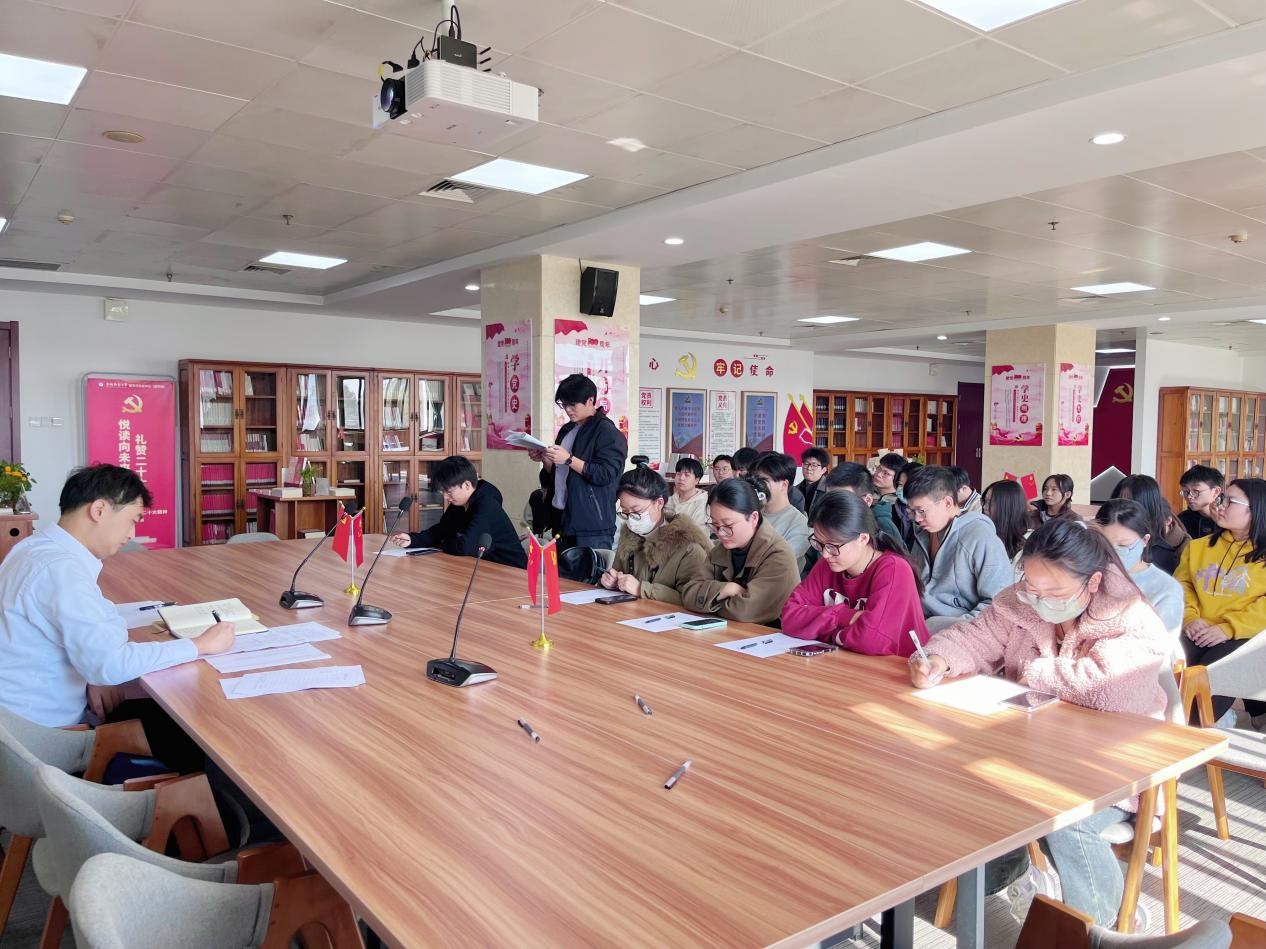 为壮大党员队伍,提升党组织的凝聚力和引领力,2023年11月23日,管工学院学生计科类一支部在图书馆三楼红色经典学习馆召开支部党员大会,讨论接收预备党员和预备党员转正。支部书记卓颜主持会议,全体支部党员参会。