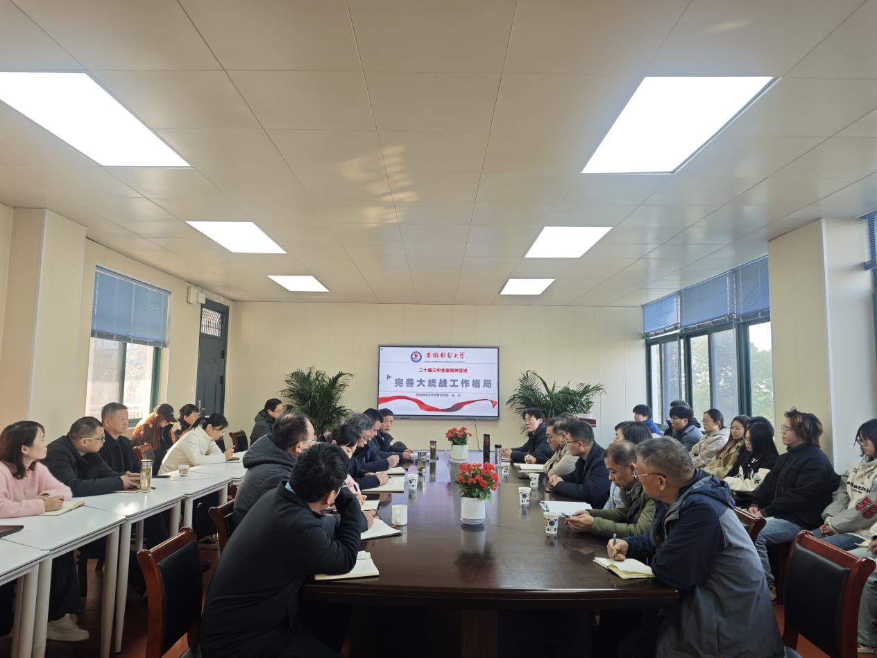 为深入学习贯彻习近平总书记关于做好新时代党的统一战线工作的重要思想,2024年12月11日下午,学院邀请校党委委员、党委统战部常务副部长孙涛作题为《完善大统战工作格局》的专题辅导报告。学院党政领导班子成员、党委委员、党支部书记、党外教师代表、少数民族学生代表、党员代表参加报告会。