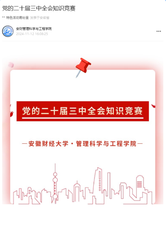 为深入学习贯彻党的二十届三中全会精神,提升青年学生思想政治素养和理论水平,汲取改革创新的奋进力量,推动党的二十届三中全会精神学习走深走实,学院依托易班示范平台和学习通教学平台举办以“凝聚改革创新力量 奋力书写时代篇章”为主题的学习贯彻党的二十届三中全会精神知识竞赛。