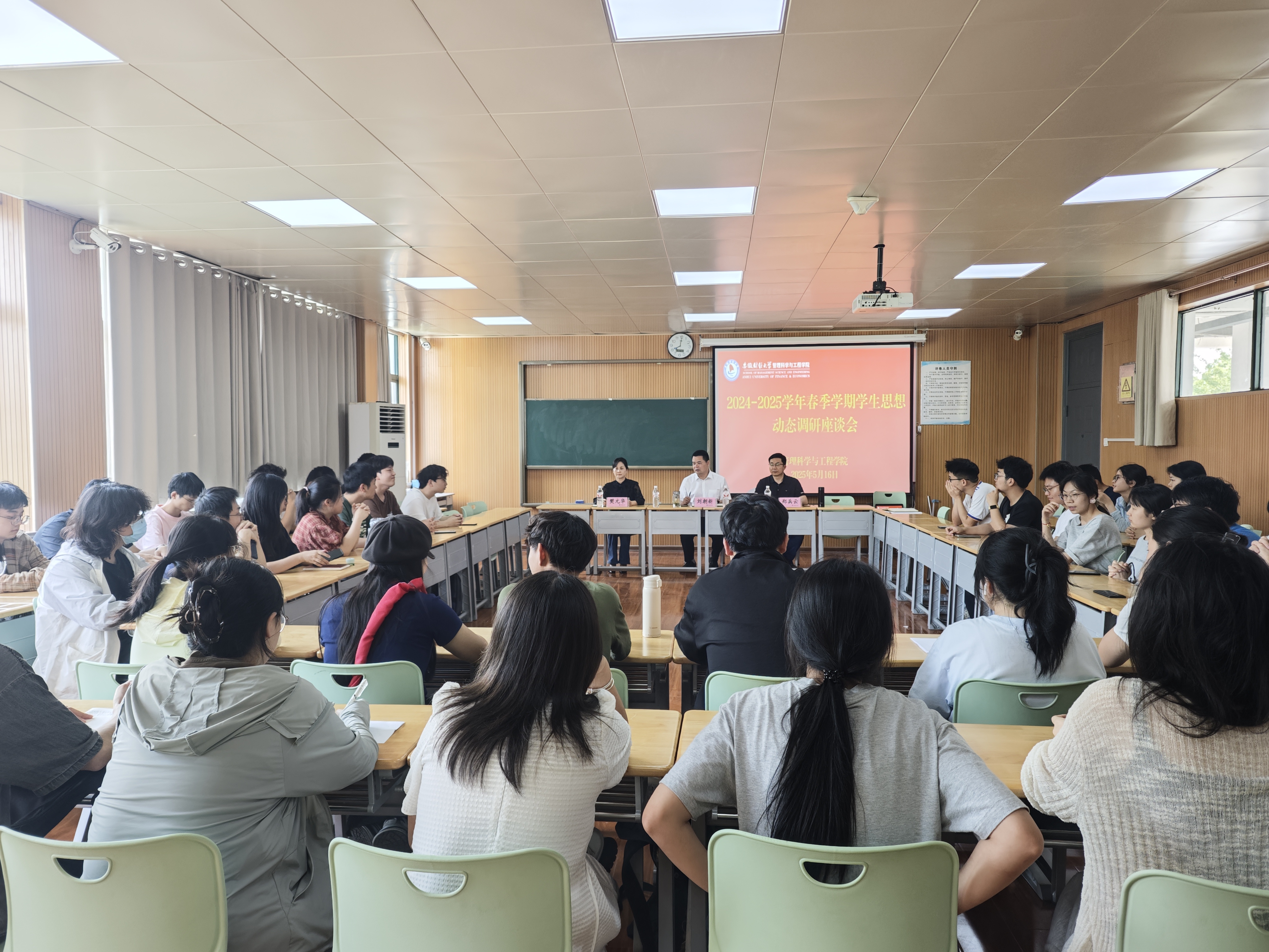 为深入贯彻落实中央八项规定精神,持续加强作风建设,全面了解学生思想动态与实际需求,推动学院各项工作高质量发展,5月16日下午,学院在广学楼302教室召开2024-2025学年第二学期学生思想动态调研座谈会。党委书记刘朝新,副院长郑兵云,党委副书记樊元华,辅导员吴淦和来自全院不同班级的学生代表共45人参加座谈会。