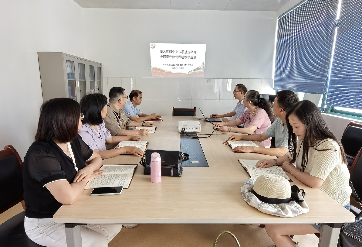 为扎实开展深入贯彻中央八项规定精神学习教育,全面提升数智课程教学质量,5月28日下午,计算机基础教研部党支部书记王平水为计算机基础教研部全体教师讲授深入贯彻中央八项规定精神学习教育专题党课。