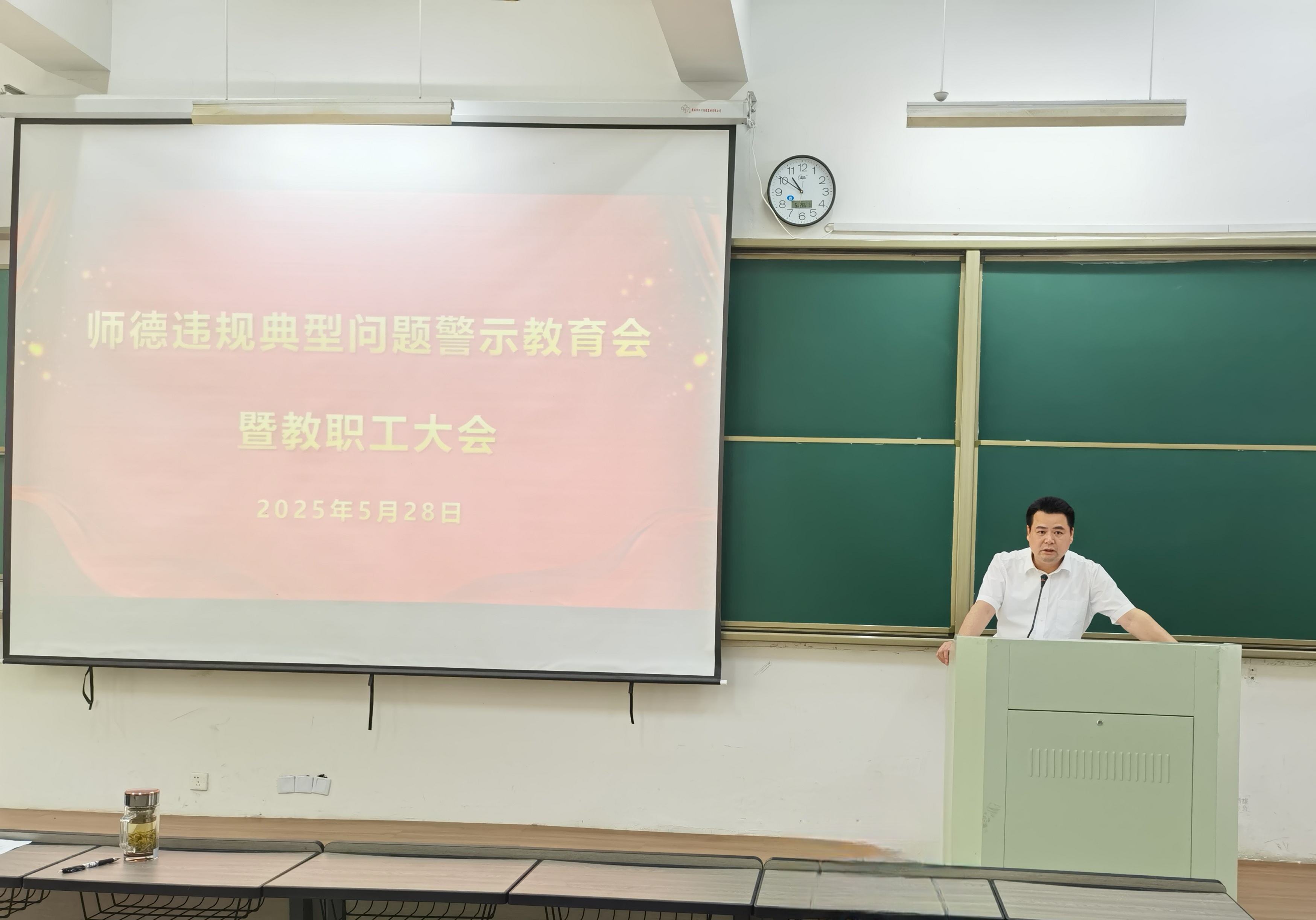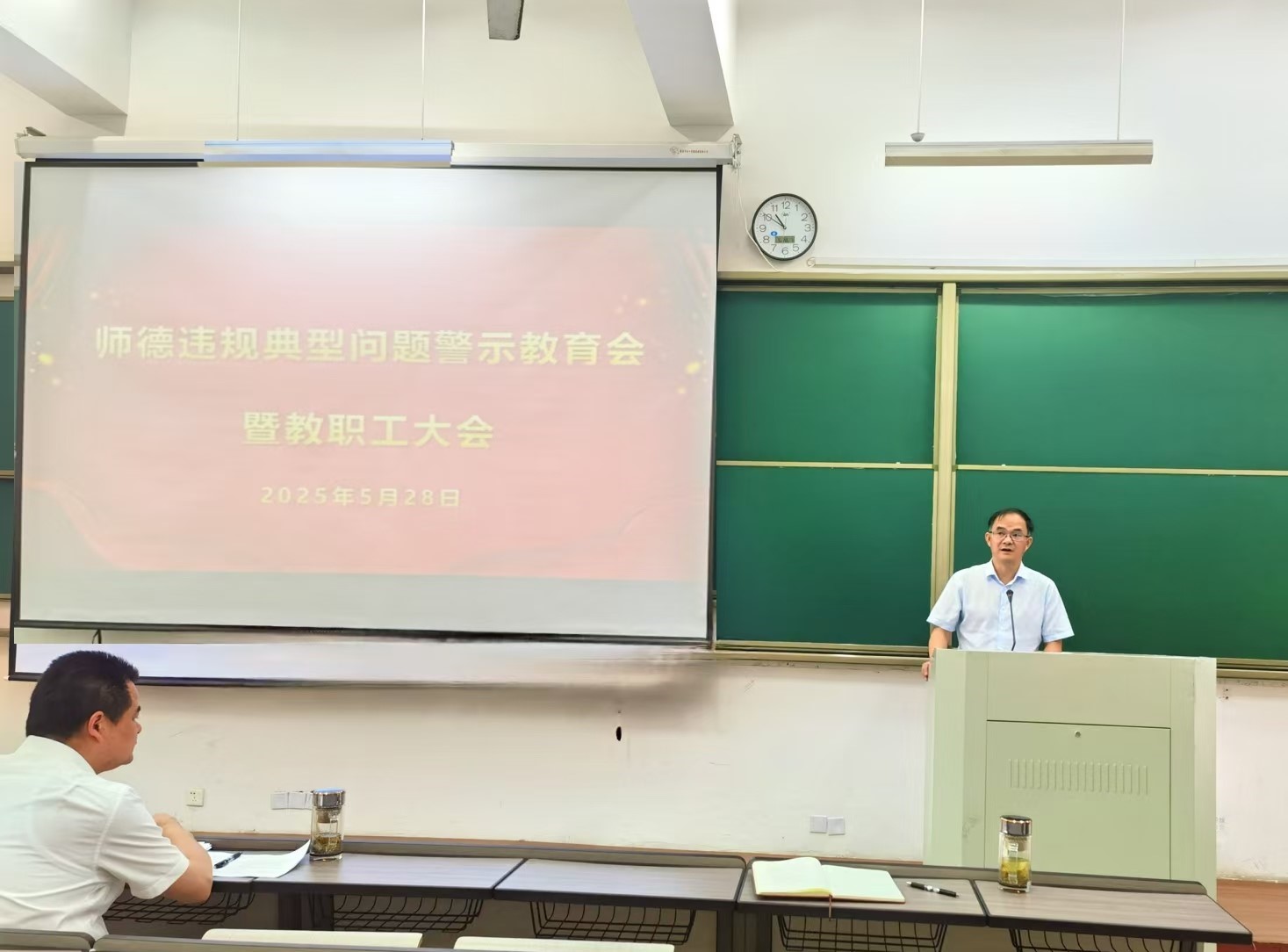 5月28日下午,学院在广学楼101教室召开师德违规典型问题警示教育会暨教职工大会,大会由院长戴道明主持,全院教职工参加会议。