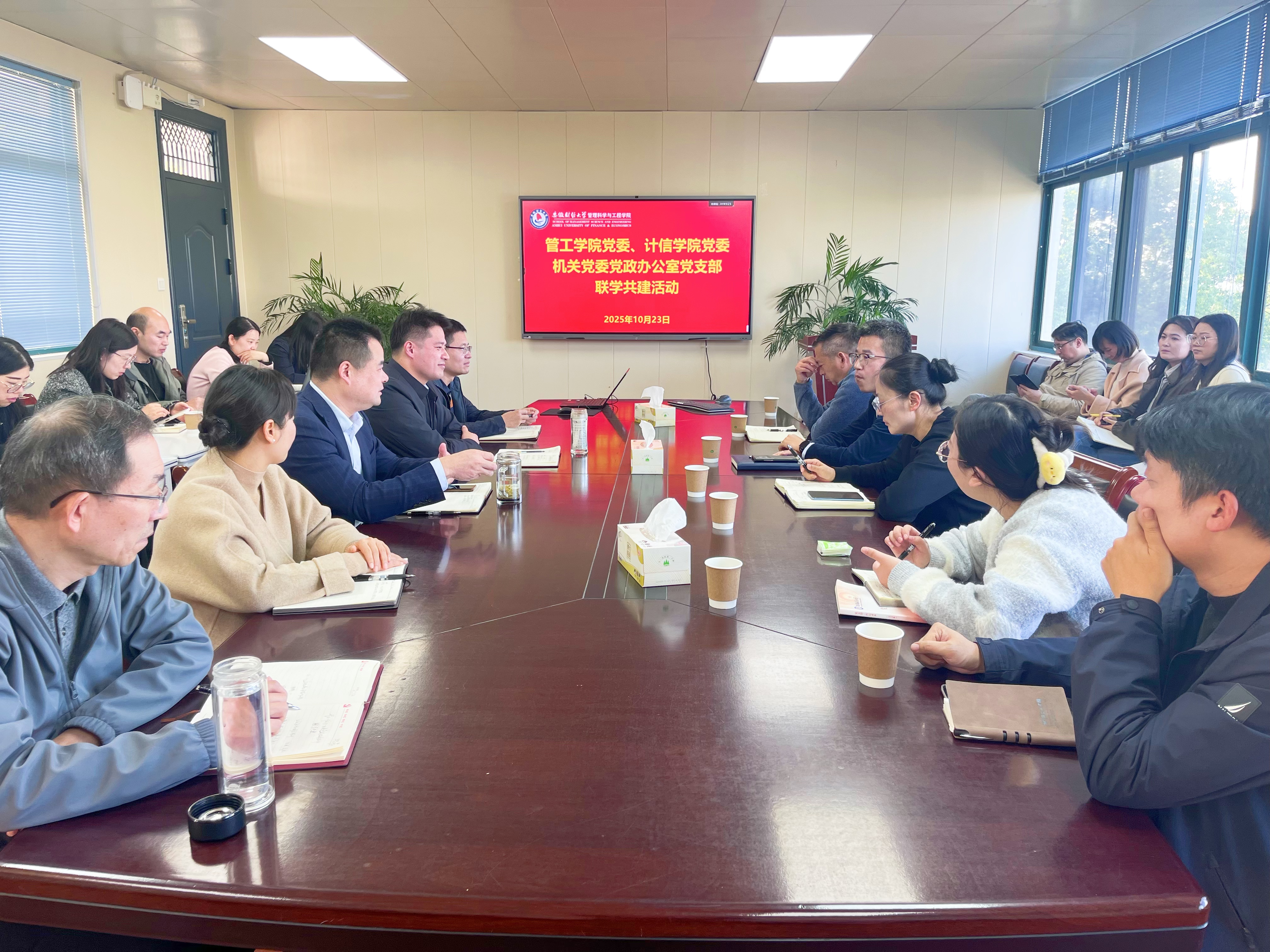 10月23日下午,管工学院党委、计信学院党委与机关党委党政办公室党支部在广学楼303会议室联合开展联学共建活动。本次活动以“强化协同联动,提升履职效能”为主题,通过业务培训和交流研讨相结合的方式,搭建跨部门学习交流平台,推动党建工作与业务工作深度融合。各单位党员代表以及工会委员、工会小组长参加此次活动。